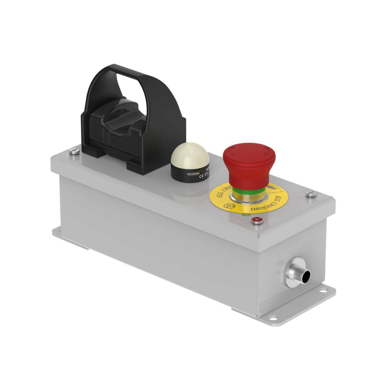 SSA-EBM-RECTANGULAR-METAL-ENCLOSURE-E-STOP-BUTTON;-NON-ILLUMINATED-BASE;-40-MM-ACTUATOR;-OTB-W-BLACK-FC;-K30LXRXP-W-RED-INDICATION;-+24-V-DC;-2NC/1NO(PNP)-E-STOP,-1NC/1NO-OTB;-12-PIN-M12-QD